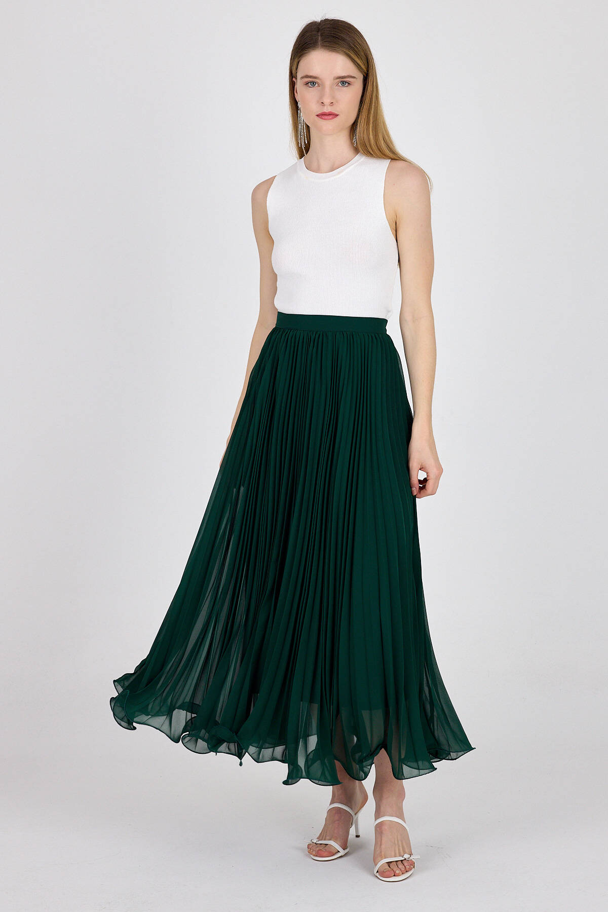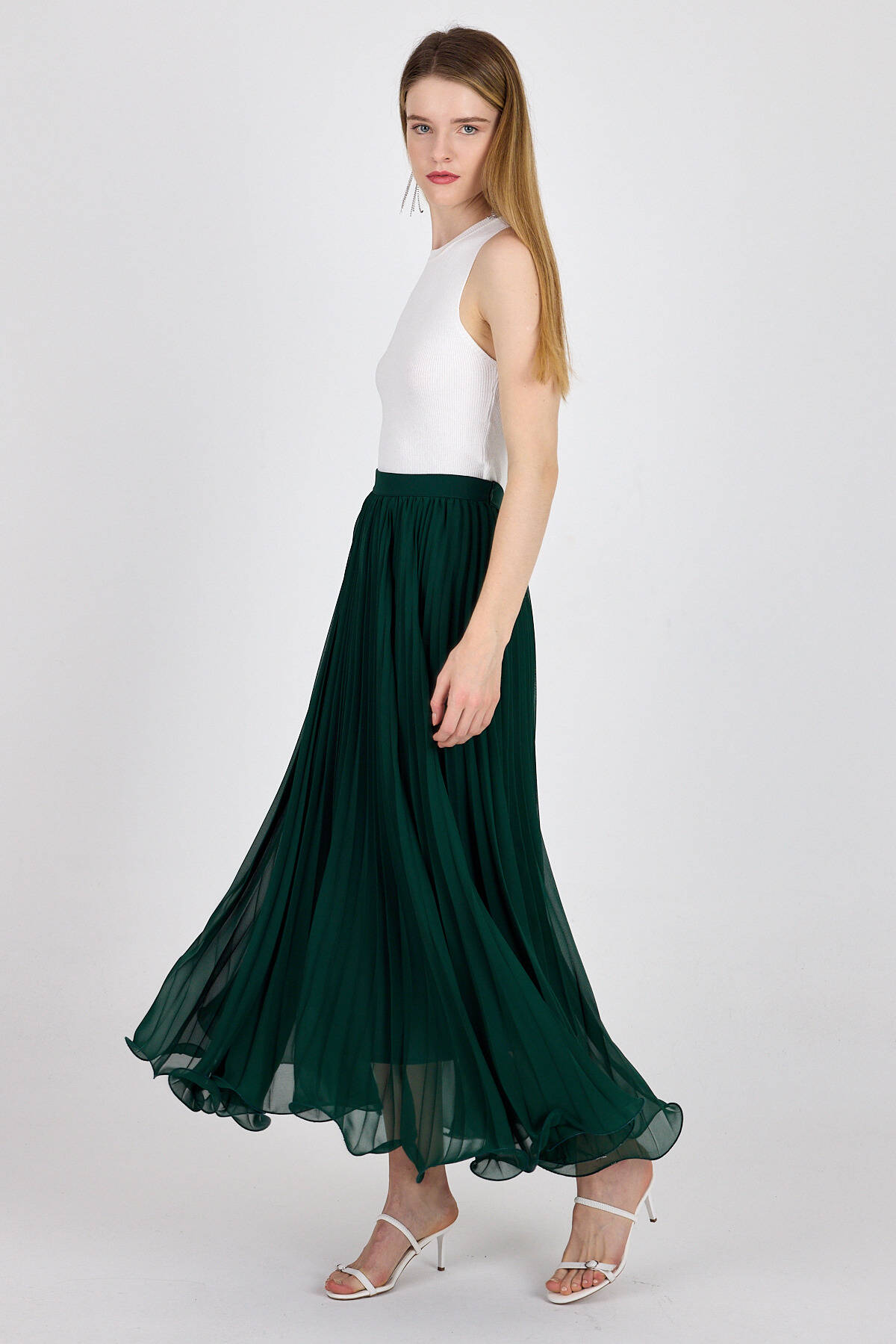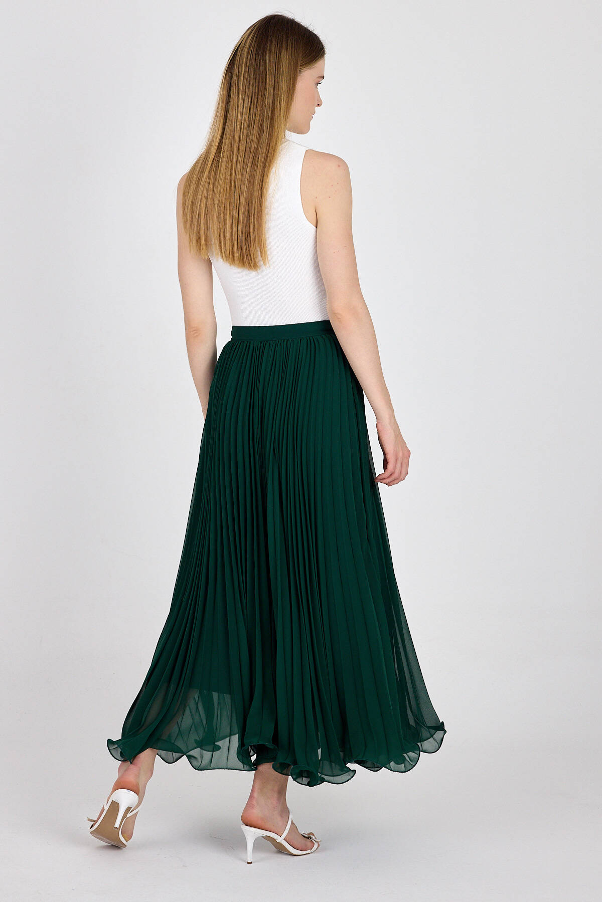 Yeşil Şifon Piliseli Yüksek Bel Maxi Etek 1003