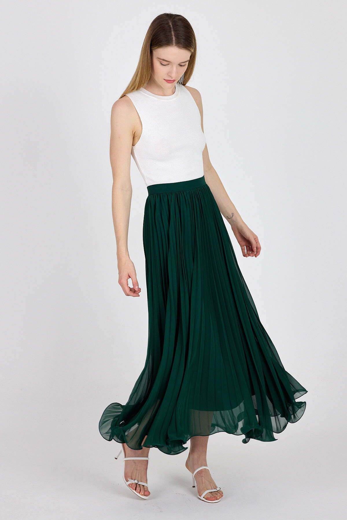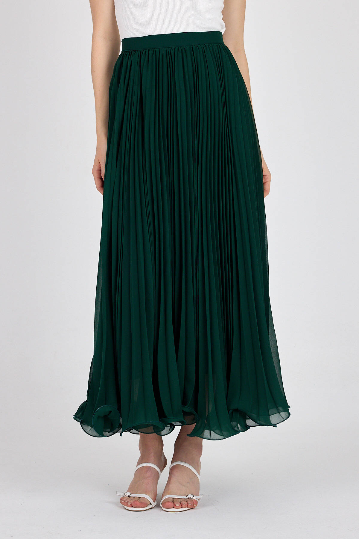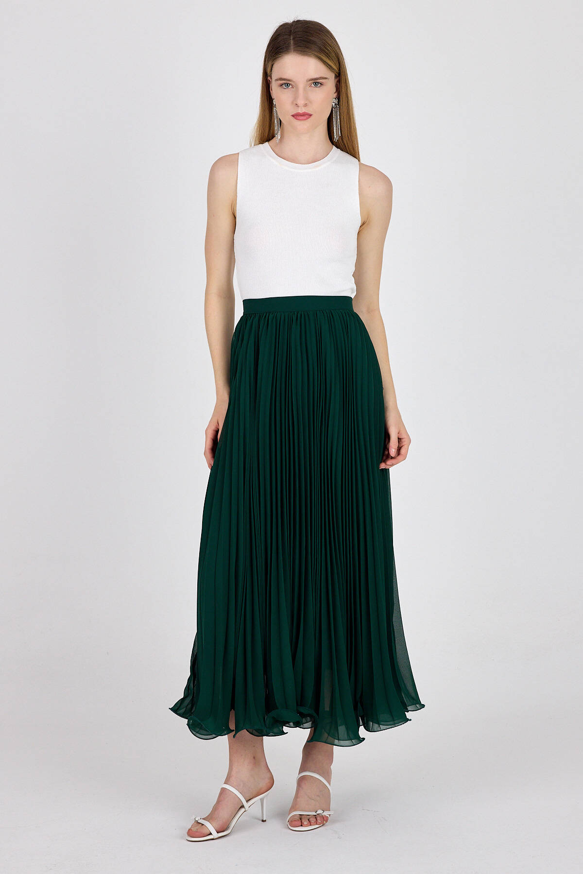 Yeşil Şifon Piliseli Yüksek Bel Maxi Etek 1003