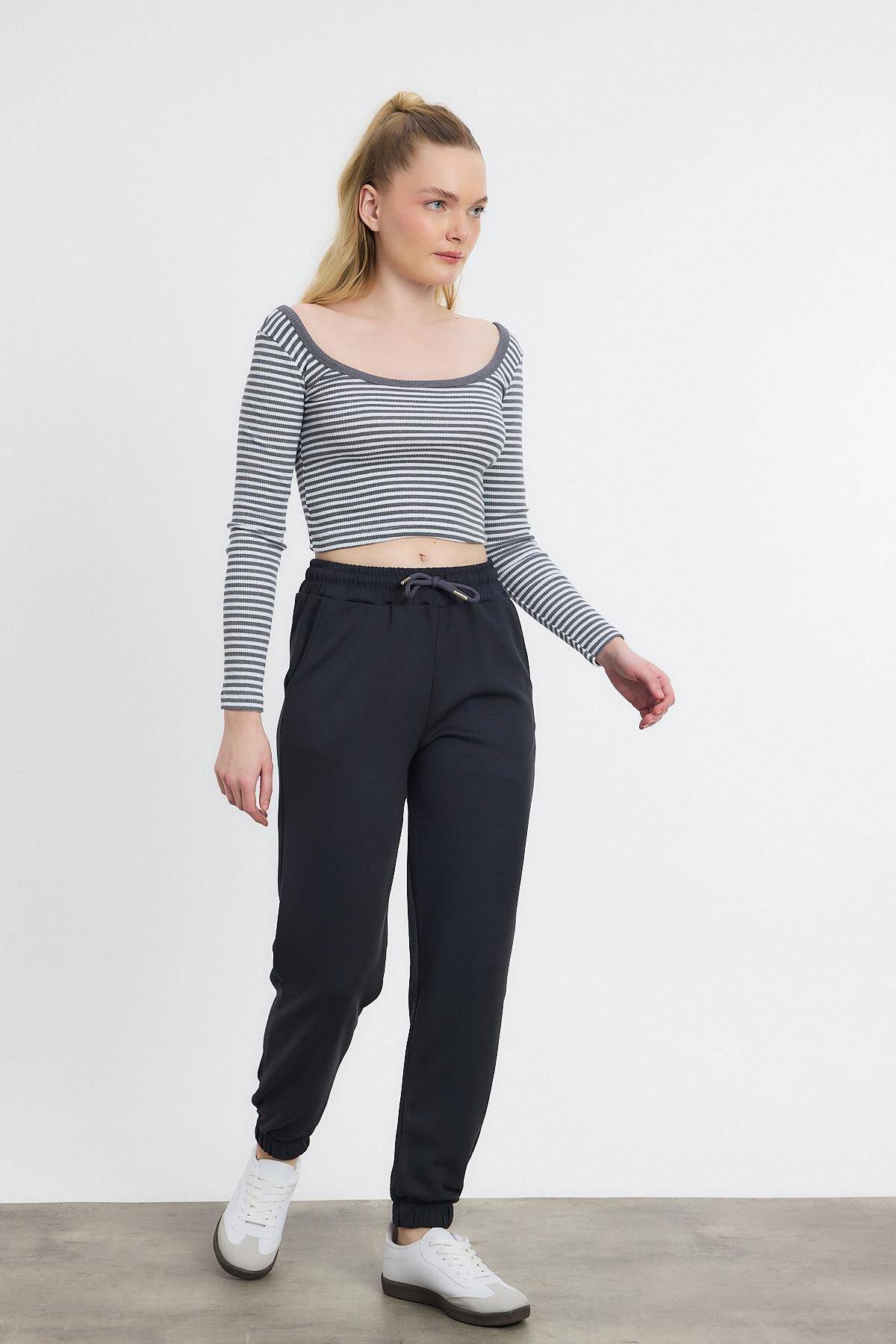 Yumuşak Dokulu Esnek Premium Kumaş Rahat Kalıp Eşofman Altı Antrasit - 8242