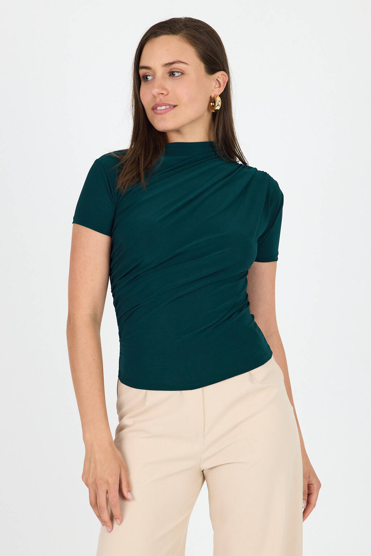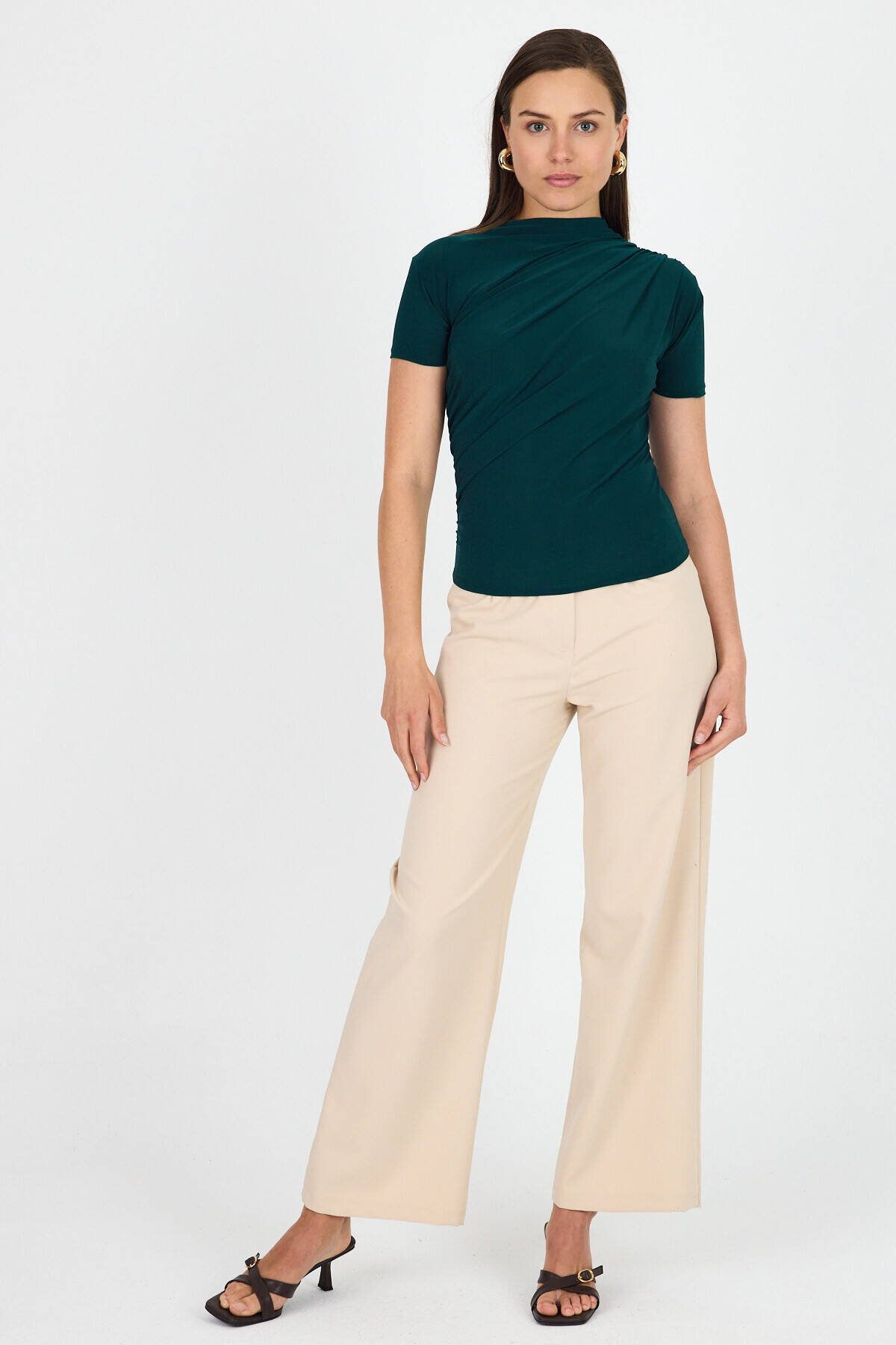 Zümrüt Kısa Kol Büzgülü Sandy Bluz 2417